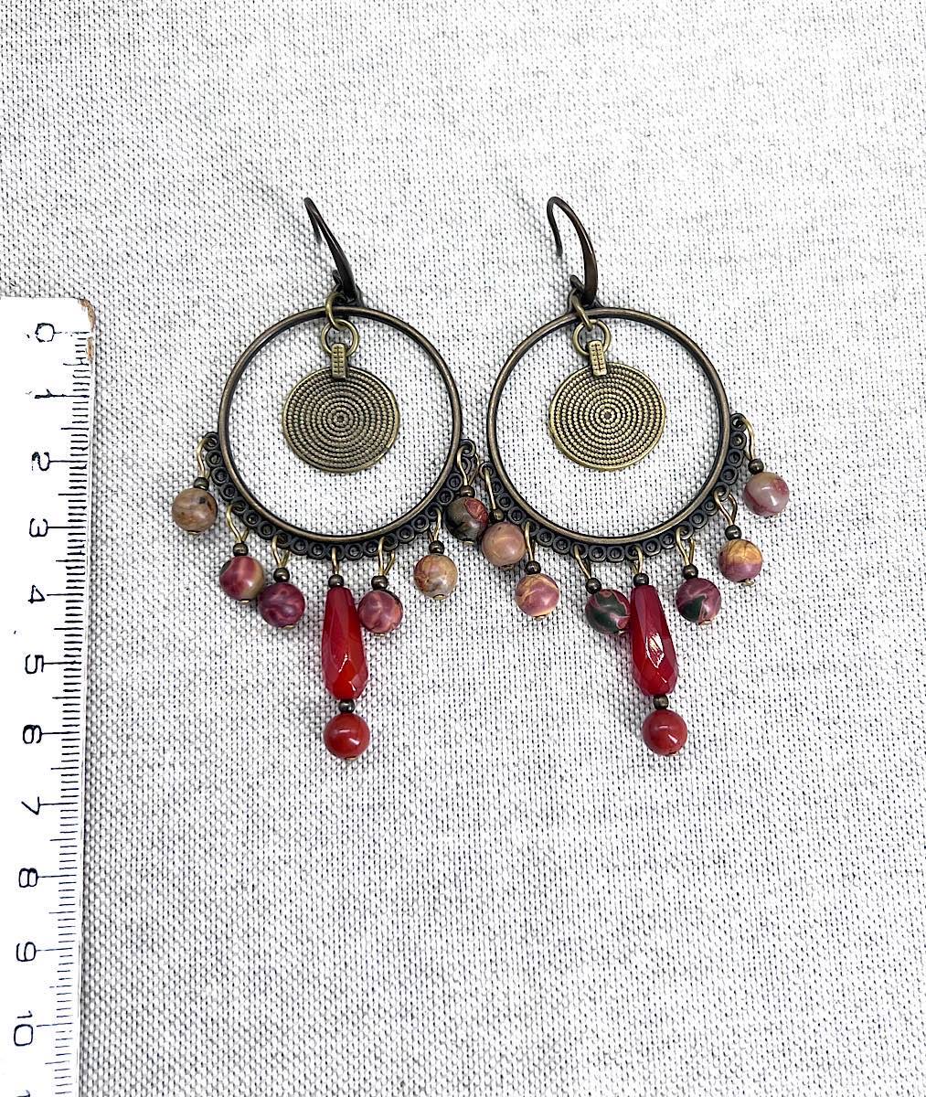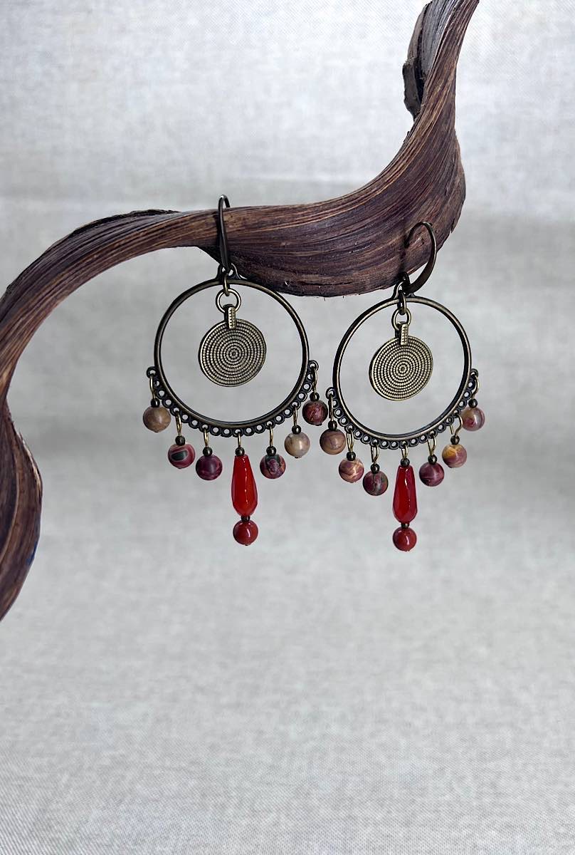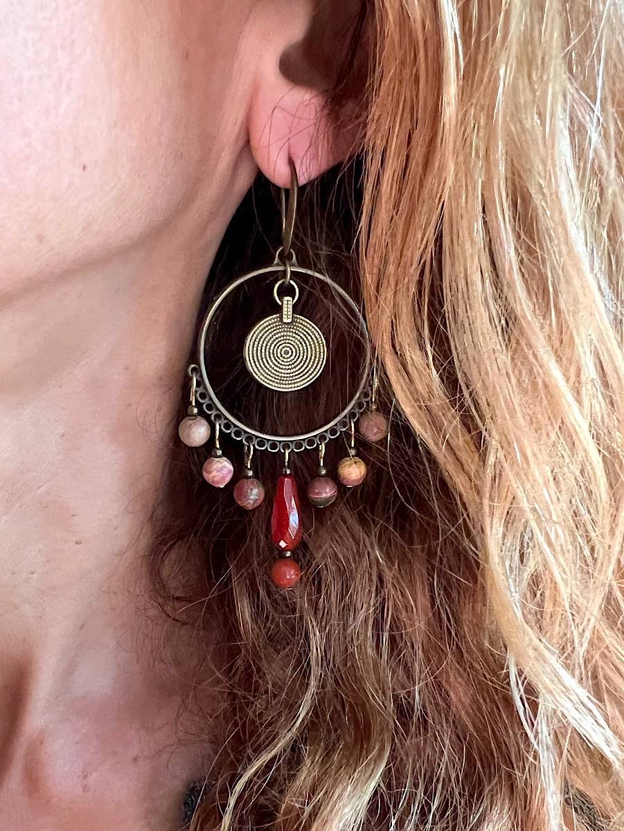 Boucles d’oreilles Asymétriques en Bronze et pierres naturelles