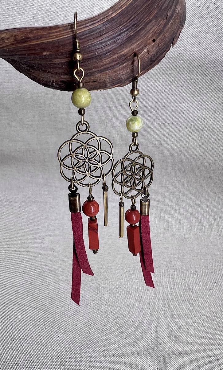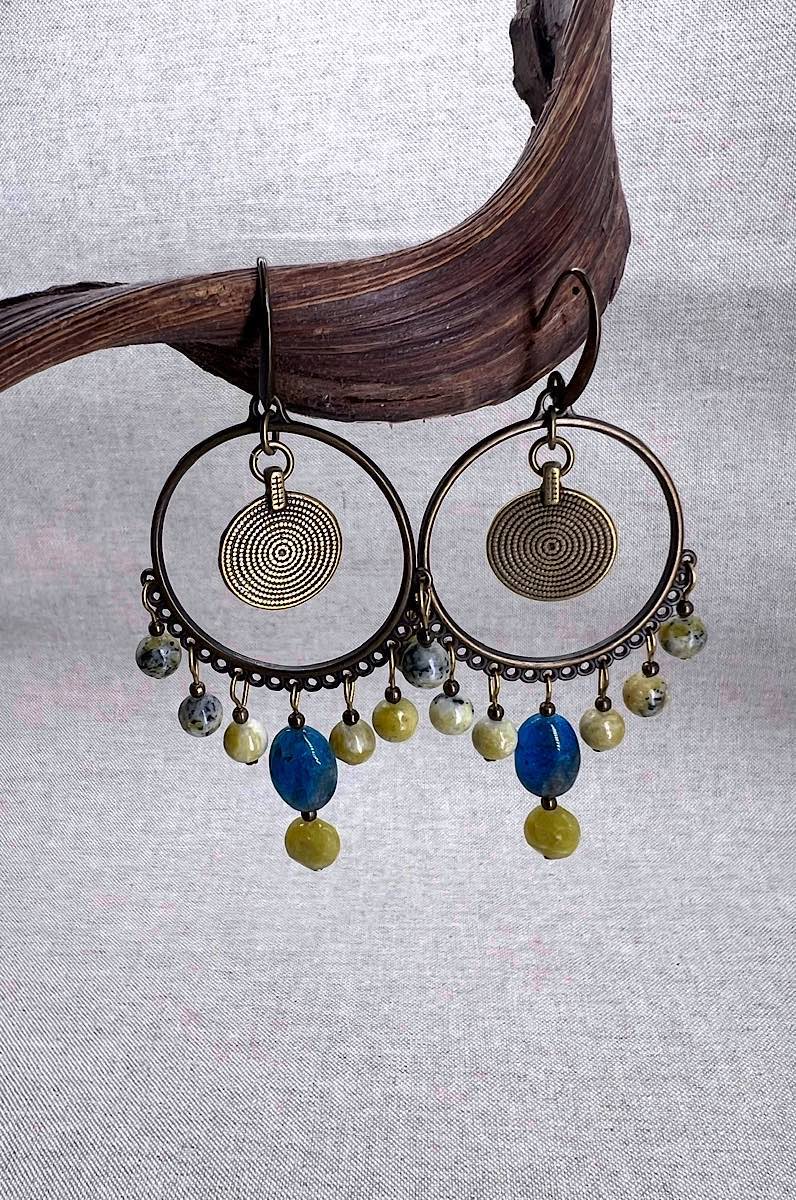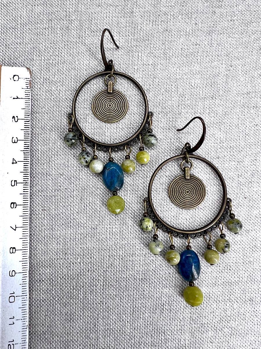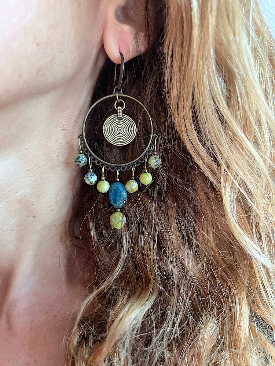 Boucles d’oreilles Asymétriques en Bronze et pierres naturelles