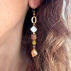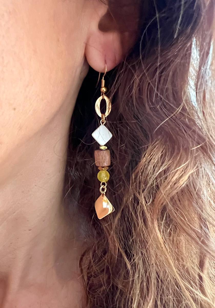 Boucles d’oreilles Asymétriques en Laiton doré , pierres naturelles semi-précieuses