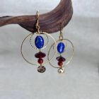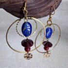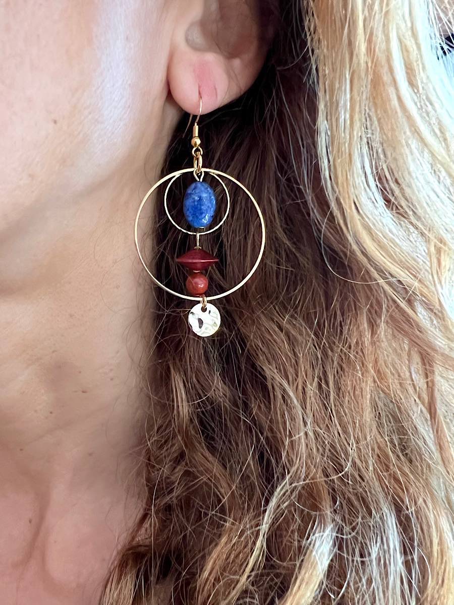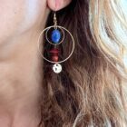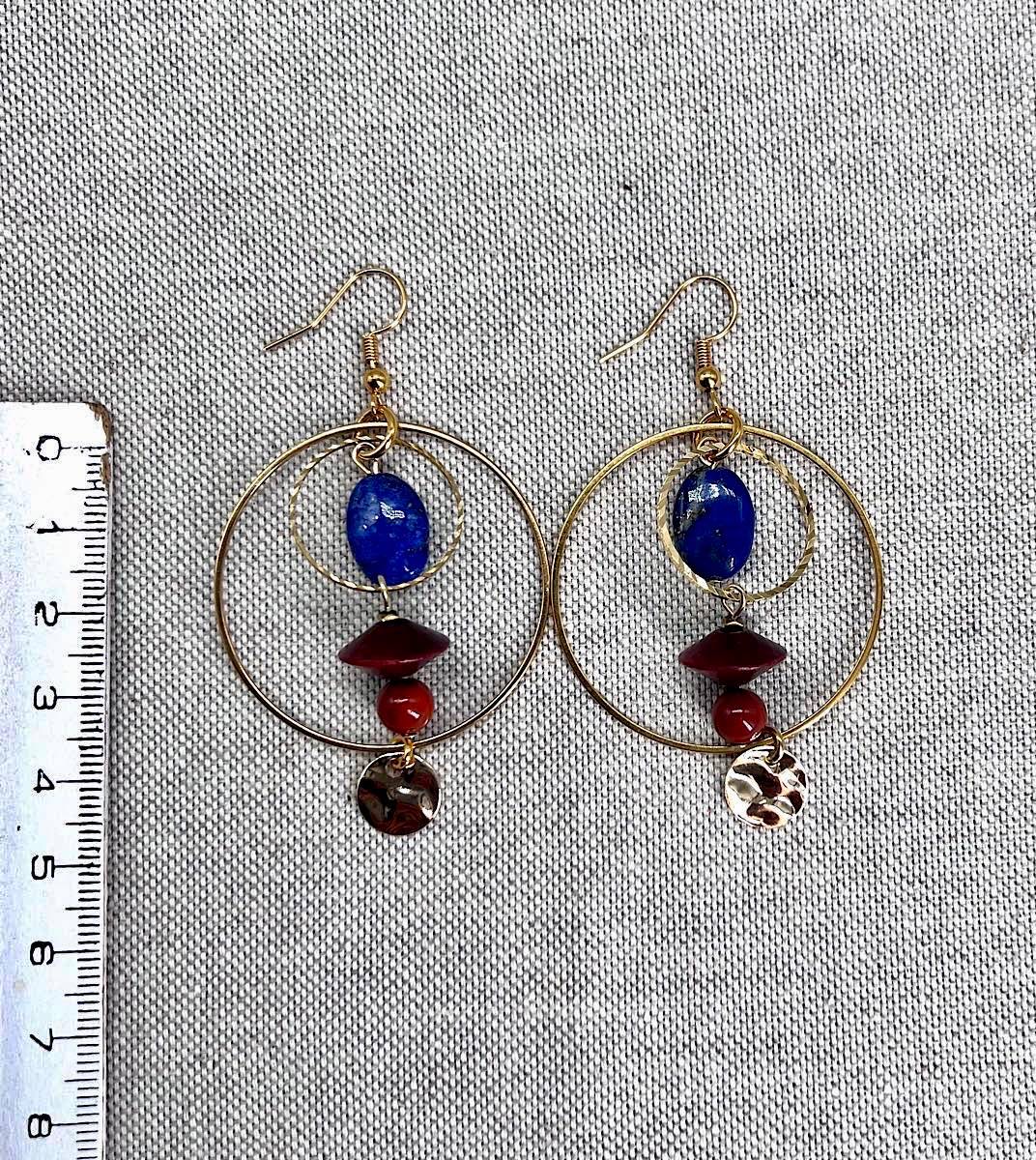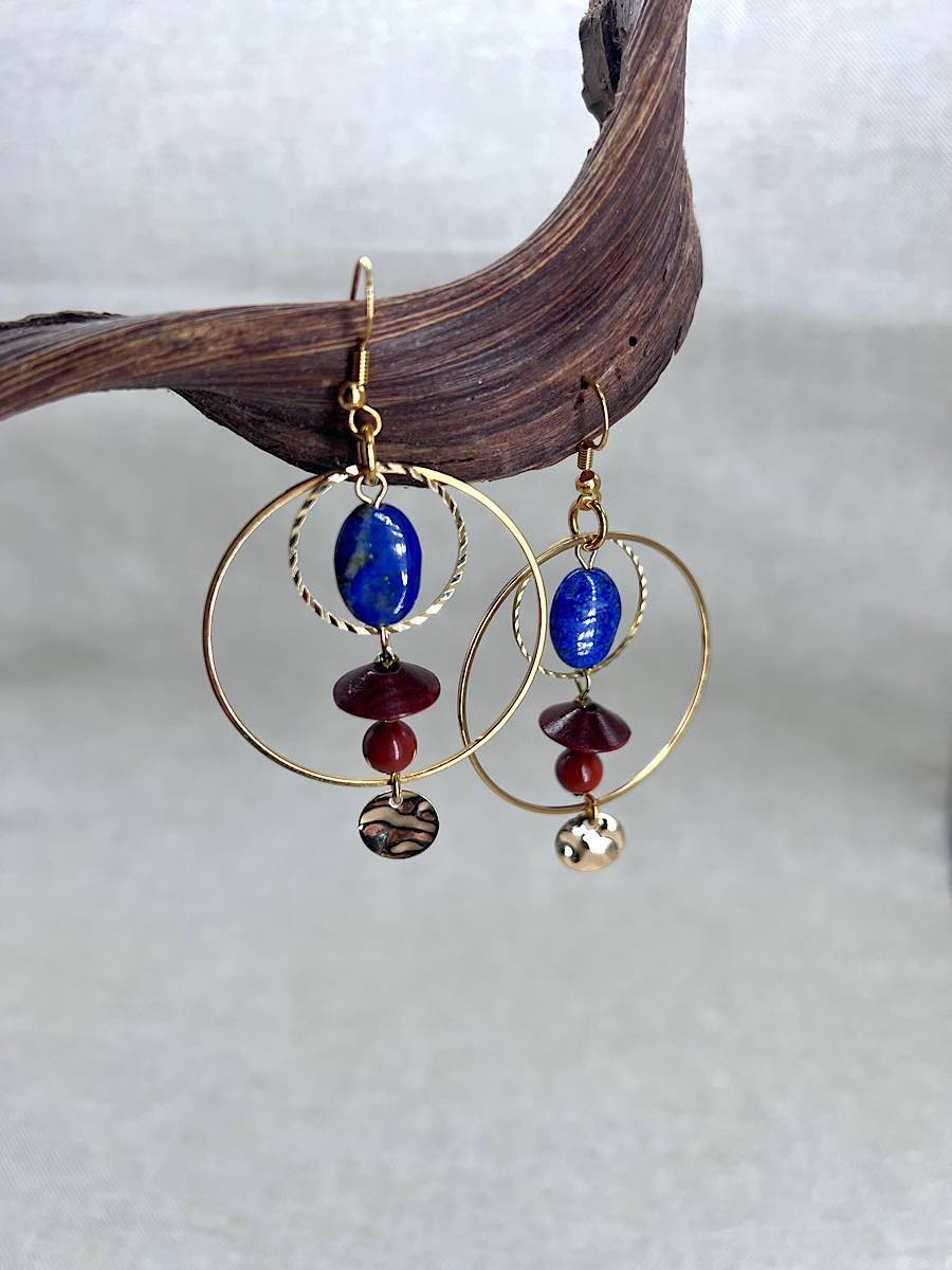 Boucles d’oreilles en laiton doré à l’or fin 24 carats, pierre lapis-lazuli , jaspe rouge