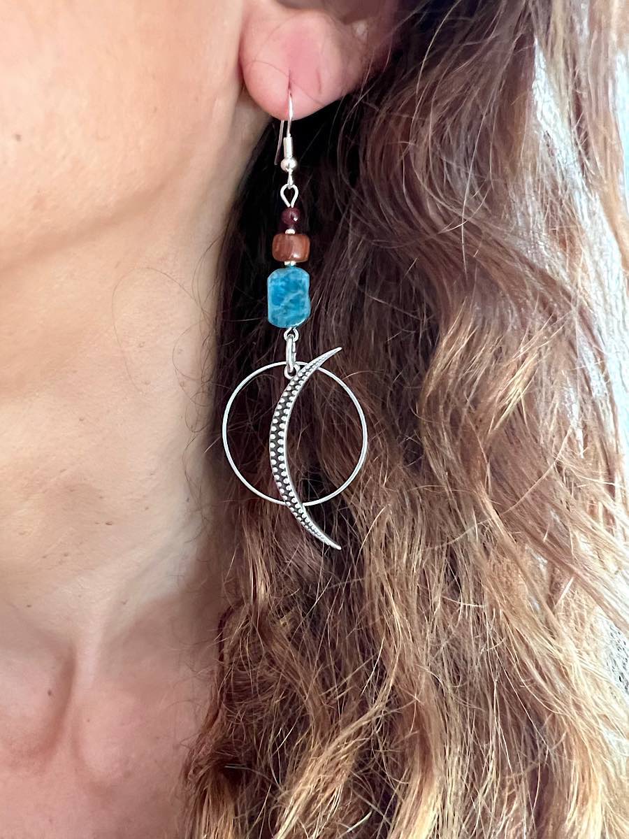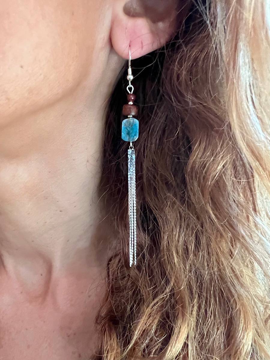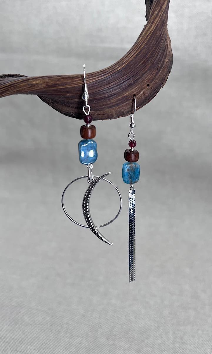 Boucles d’oreilles Asymétriques en placage argent et Apatite
