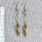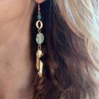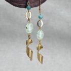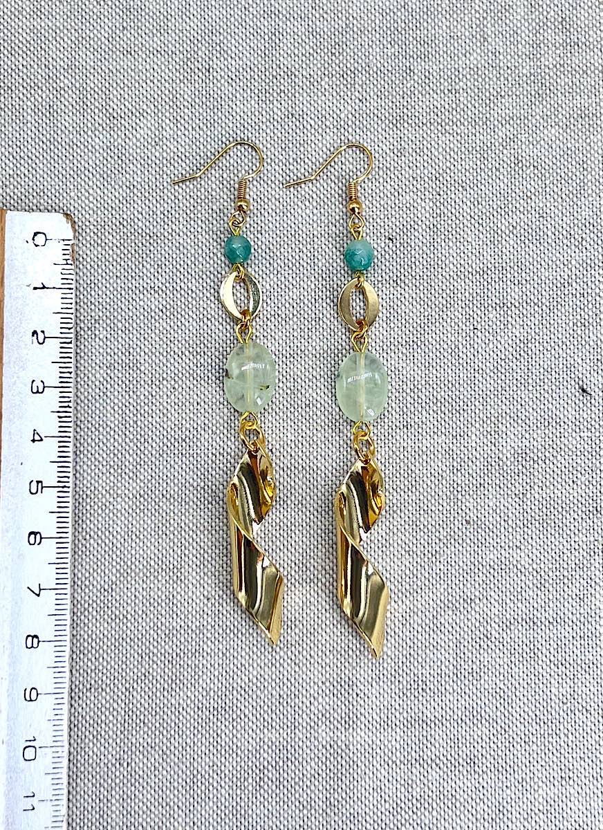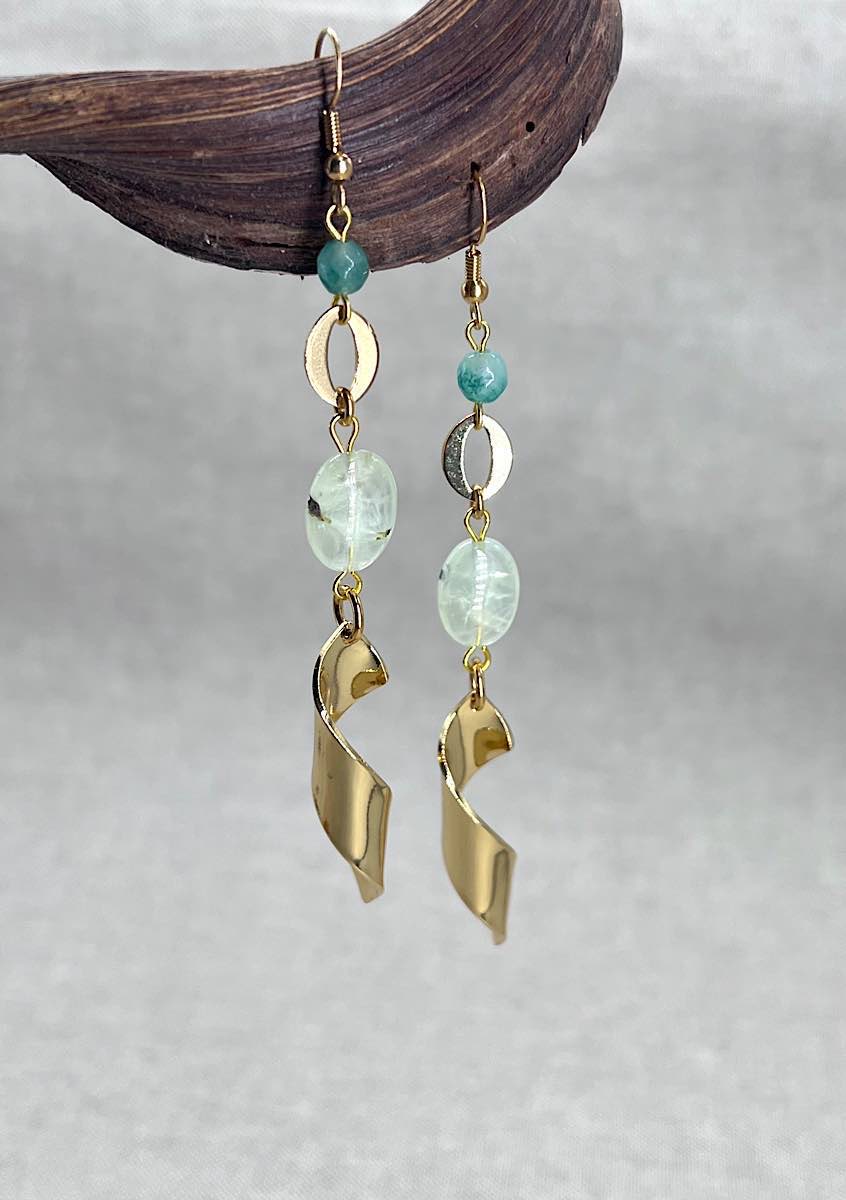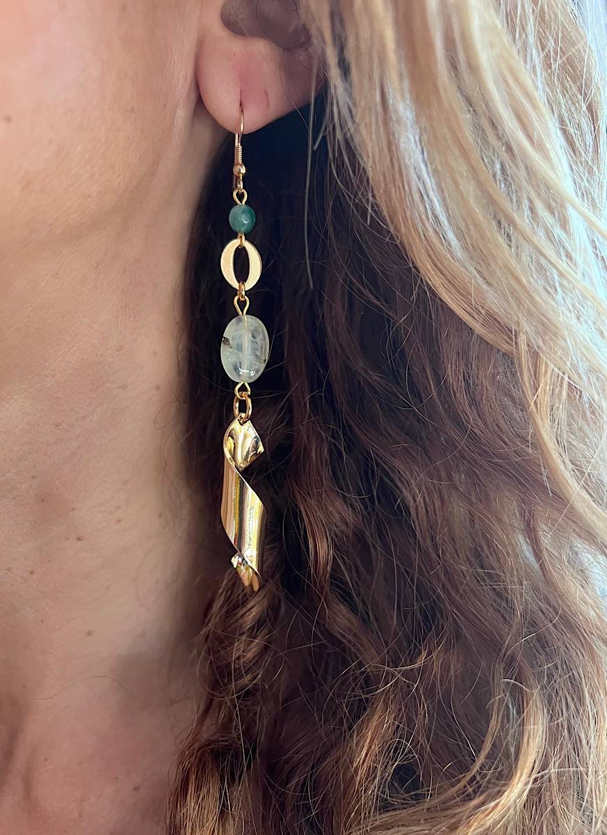 Boucles d’oreilles en laiton doré à l’or fin 24 carats, pierre jaspe paysage, serpentine