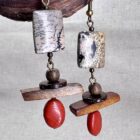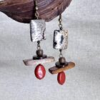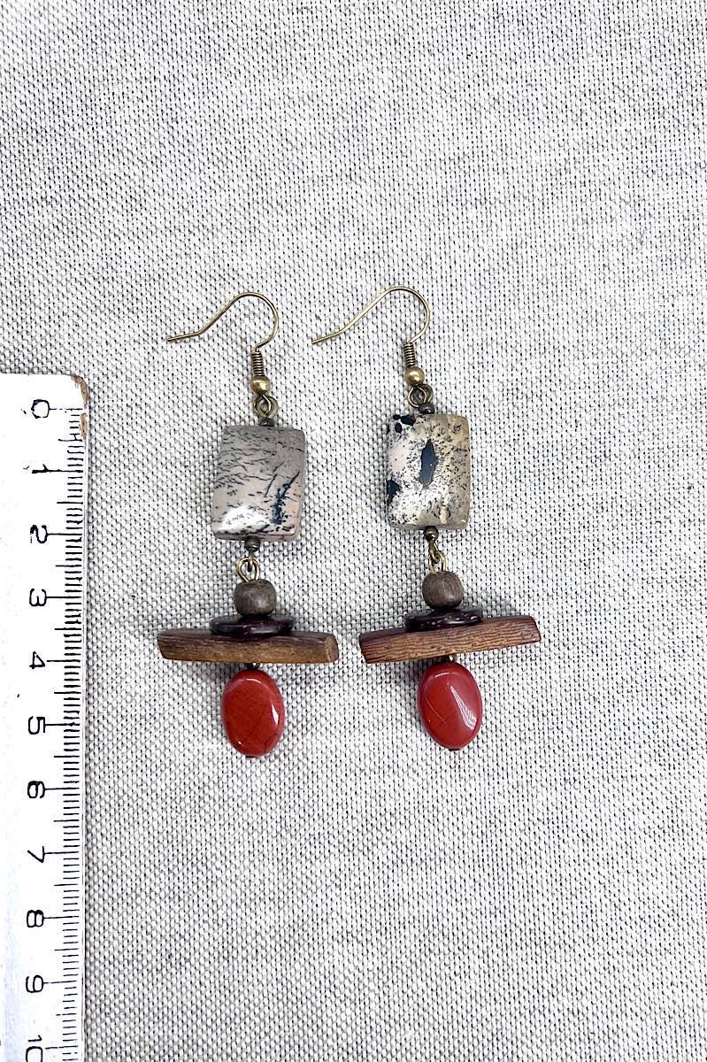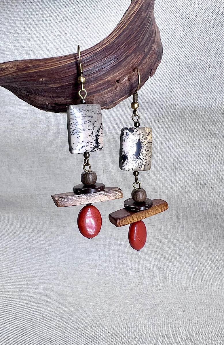 Boucles d’oreilles laiton ,pierre jaspe paysage et jaspe rouge